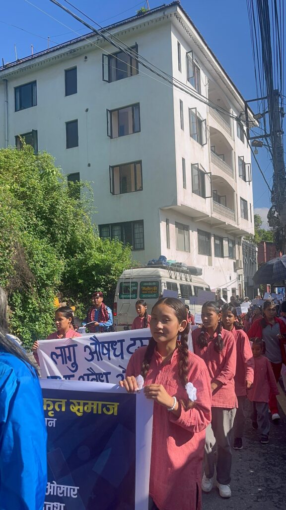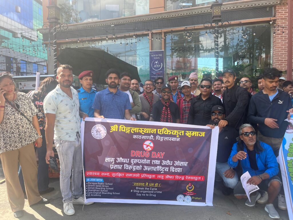 “लागुऔषध विरुद्ध एकजुट होऔँ”, “स्वस्थ जीवन हाम्रो अभियान” भन्ने नारासहित आयोजित र्याली तथा चेतनामूलक कार्यक्रम पिंगलास्थानबाट सुरु भई बत्तीसपुतली, पुरानो बानेश्वर, सिनामंगल हुँदै त्रिभुवन अन्तर्राष्ट्रिय विमानस्थल क्षेत्रबाट पुनः पिंगलास्थानमा समापन गरिएको थियो।